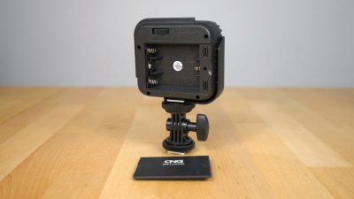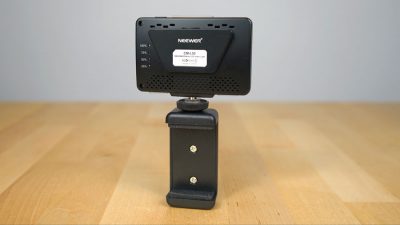 Die Neewer CM-L50 passt von ihrer Größe gut zu Smartphones und wird ausschließlich über USB aufgeladen und betrieben. Die Leuchte hat mehrere Halterungsmöglichkeiten und wird beispielsweise mit einem Adapter geliefert, in den direkt das Smartphone eingespannt werden kann. Ein großer Nachteil ist aber, dass die Blitzschuhhalterung nicht fixiert werden kann. Die Lampe kann also nicht an einen Zubehörschuh festgeschraubt werden. Bei viel Bewegung droht diese deshalb immer aus dem Blitzschuh zu rutschen und ist damit für einen Einsatz an der Mehrfachhalterung ungeeignet. Das ist ein großer Nachteil, weil man die CNG dann eigentlich nur noch über die mitgelieferte Halterung direkt an das Smartphone befestigen kann. Wer auf eine zusätzliche Halterung verzichten kann, wird hiermit aber eine gute Lösung für eine externe Smartphone-Lichtquelle finden: