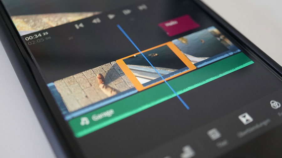 Die Bedienung der App ist intuitiv und sehr übersichtlich gestaltet. Direkt zu Beginn legt man eine neue Sequenz an und importiert von seinem Smartphone-Speicher die Videos, die man schneiden möchte. Bereits die Bezeichnung „Sequenz“ deutet die Verwandtschaft mit dem großen Bruder „Premiere Pro“ an: Die Video- und Audiospuren, die Timeline, der Positionsanzeiger und sogar die Anzeige des Tonpegels ist Premiere-Nutzern vertraut. Ein übersichtlicher Timecode wird auch angezeigt, der zwischen Gesamtvideolänge und aktueller Position unterscheidet.